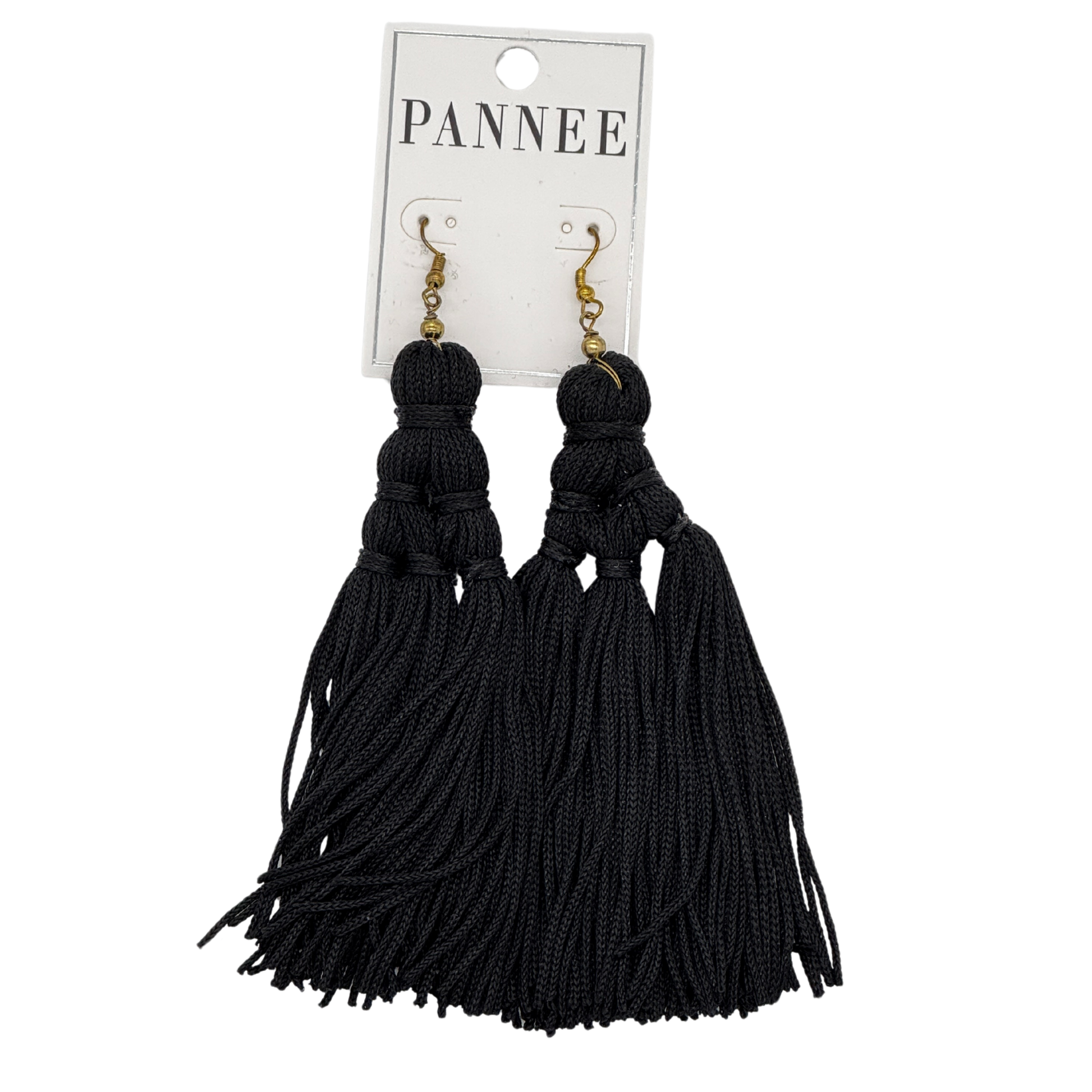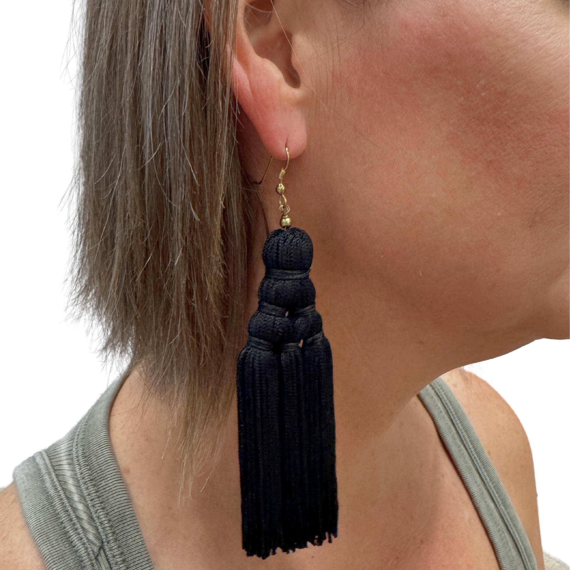 Gold Hook Earring with Black Tassel
