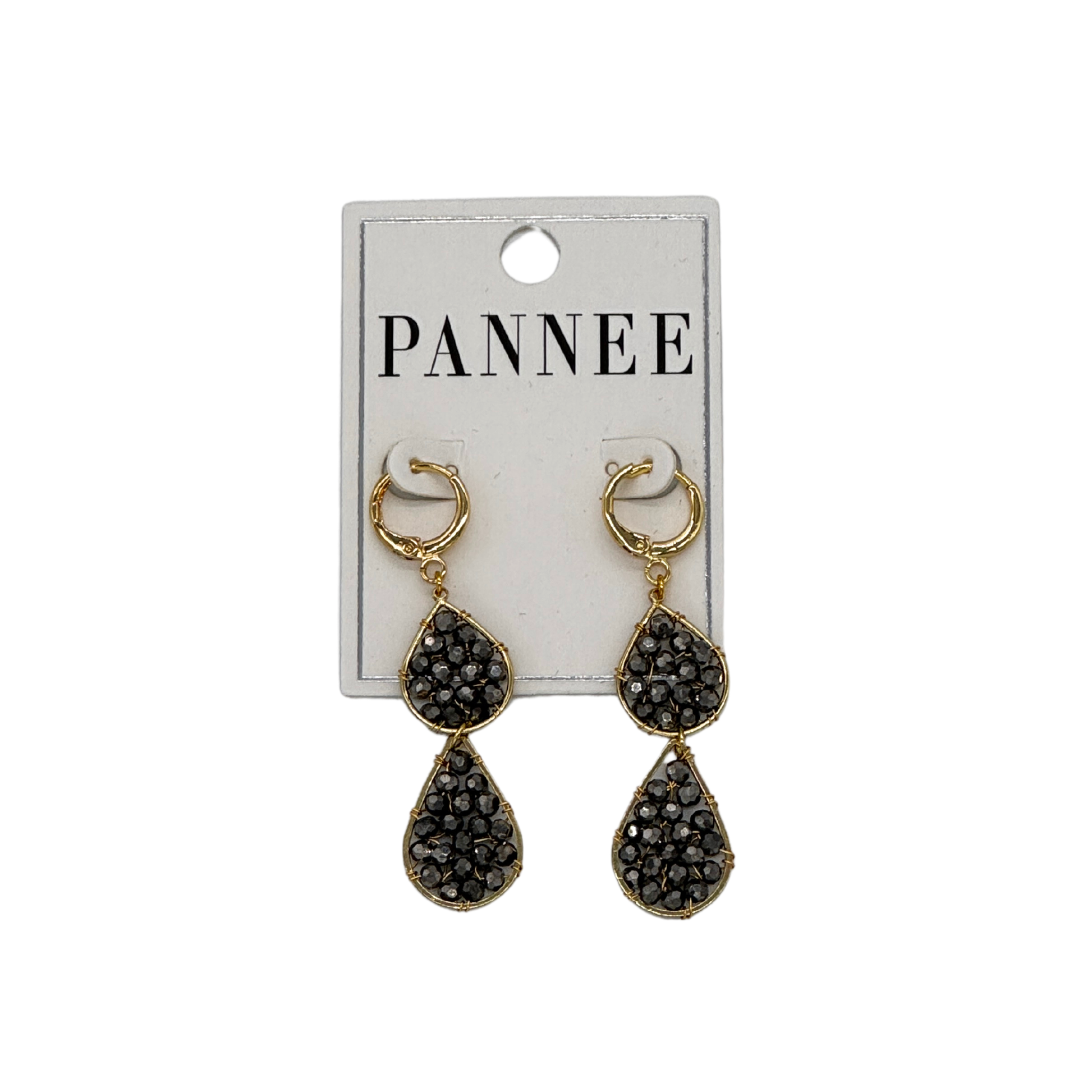 Gold Hoop Clasp with Teardrop Wire Weaved Grey Rhinestones